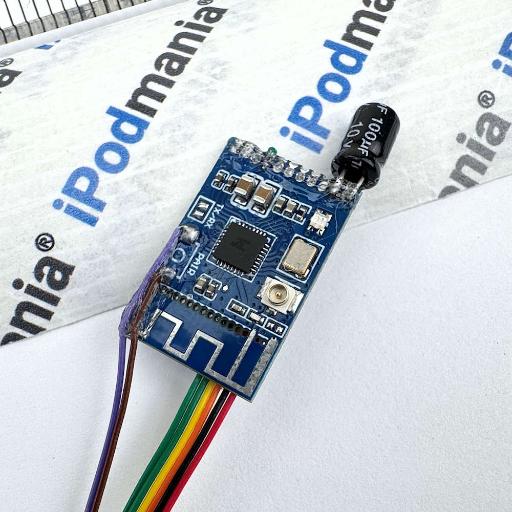 | 1. +5V, PGND | To iPod battery: +5V to positive terminal, PGND to negative terminal. | Caution: Be careful not to interchange the polarities. |